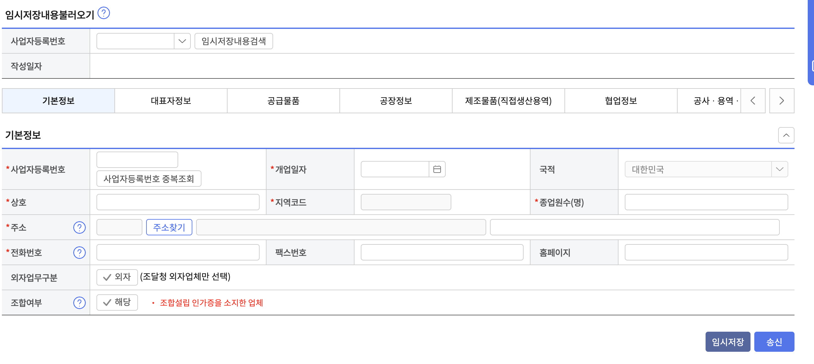 공장관리번호 : 산업단지공단에서 관리되는 15자리 번호로 공장등록증 참조 필요